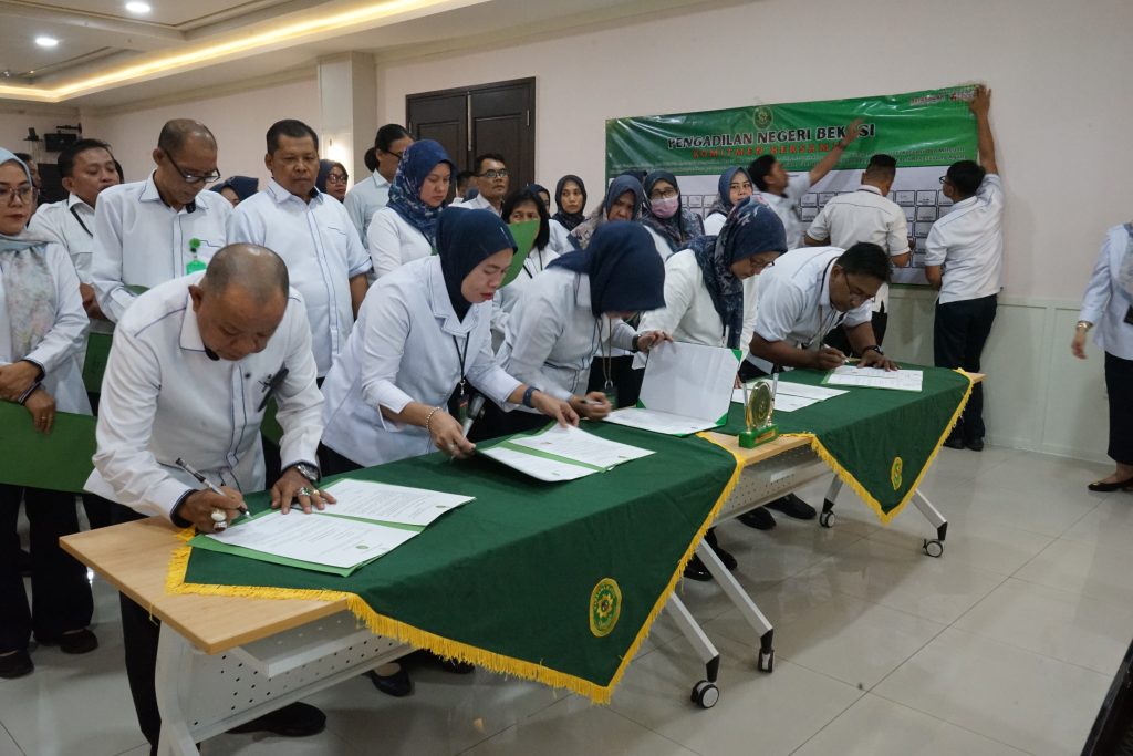 Pengadilan Negeri Bekasi kembali menunjukkan komitmennya dalam menjaga integritas dengan melaksanakan Penandatanganan dan Pembacaan Pakta Integritas 2026. Acara yang berlangsung dengan penuh khidmat ini bertujuan untuk memperkuat transparansi, akuntabilitas, dan profesionalisme di dalam pelayanan hukum di wilayah Bekasi. 🤝